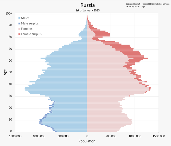 Das geschah vor allem auf natürlichem Wege. Die geburtenstarken Jahrgänge der 1960er Jahre werden nach und nach durch die des „demografischen Einbruchs“ Ende der 1990er und Anfang der 2000er Jahre abgelöst. Die Zahl der jungen Menschen im erwerbsfähigen Alter ist „aufgrund der Besonderheiten der Alterspyramide in Russland“ um mehr als ein Viertel zurückgegangen, so die Wirtschaftsgeografin Natalja Subarewitsch.