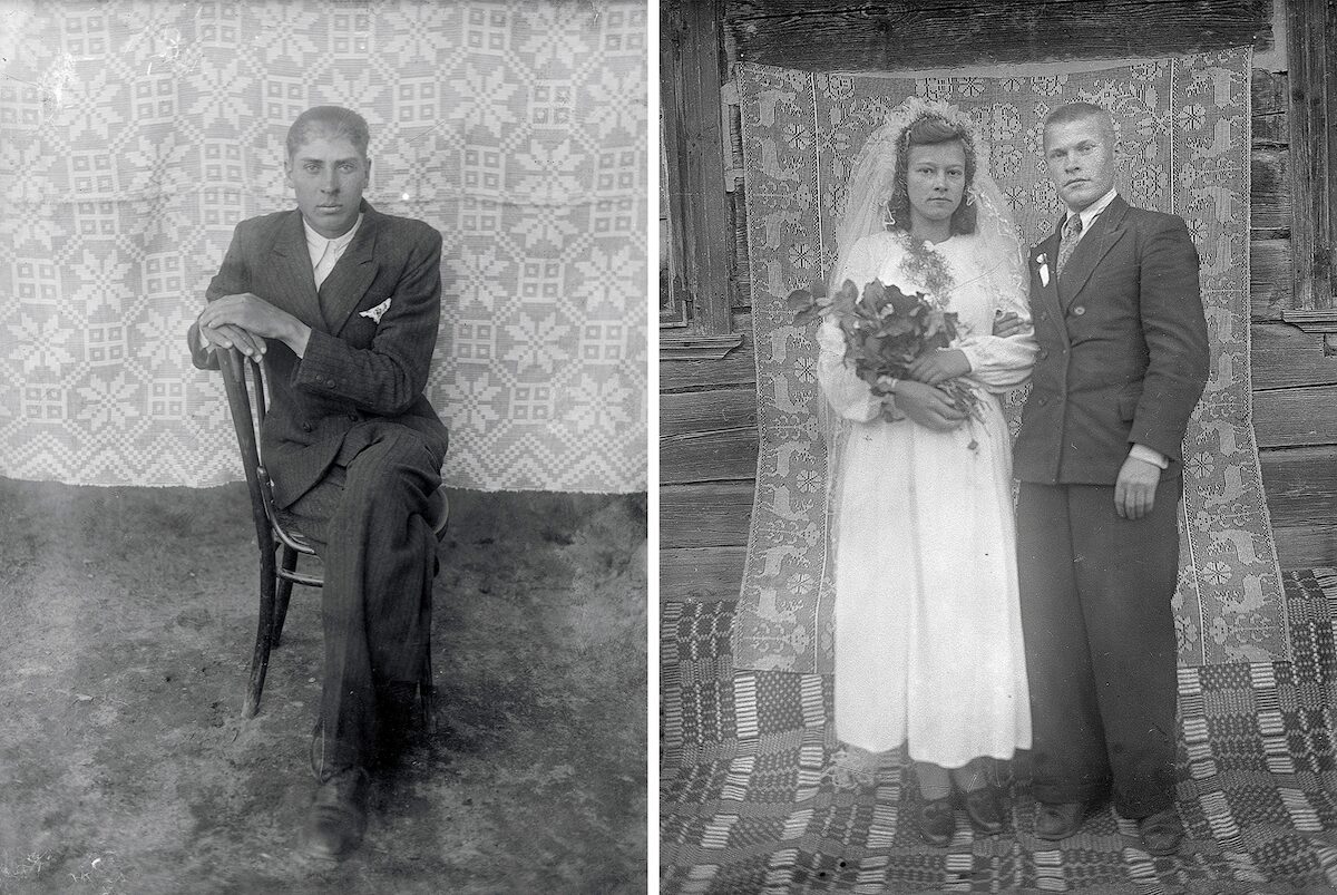 Links: 1955 Hlybokaje, Wizebskaja Woblasz. Das Ehepaar Kutschynski. Historisch Ethnografisches Museum Hlybokaje.