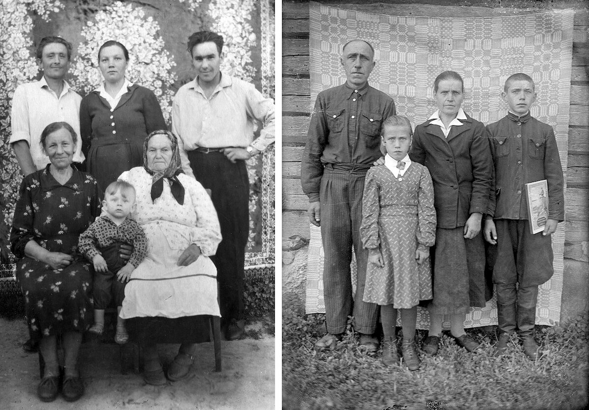 Rechts: 1940, Nawassjolki, Hrodsenski Rajon, Hrodsenskaja Woblasz. Familie von Franzischek Martulja. Historisch Ethnografisches Museum Hlybokaje. / Fotos © VEHA-Archiv, Sammlung Najlepšy bok