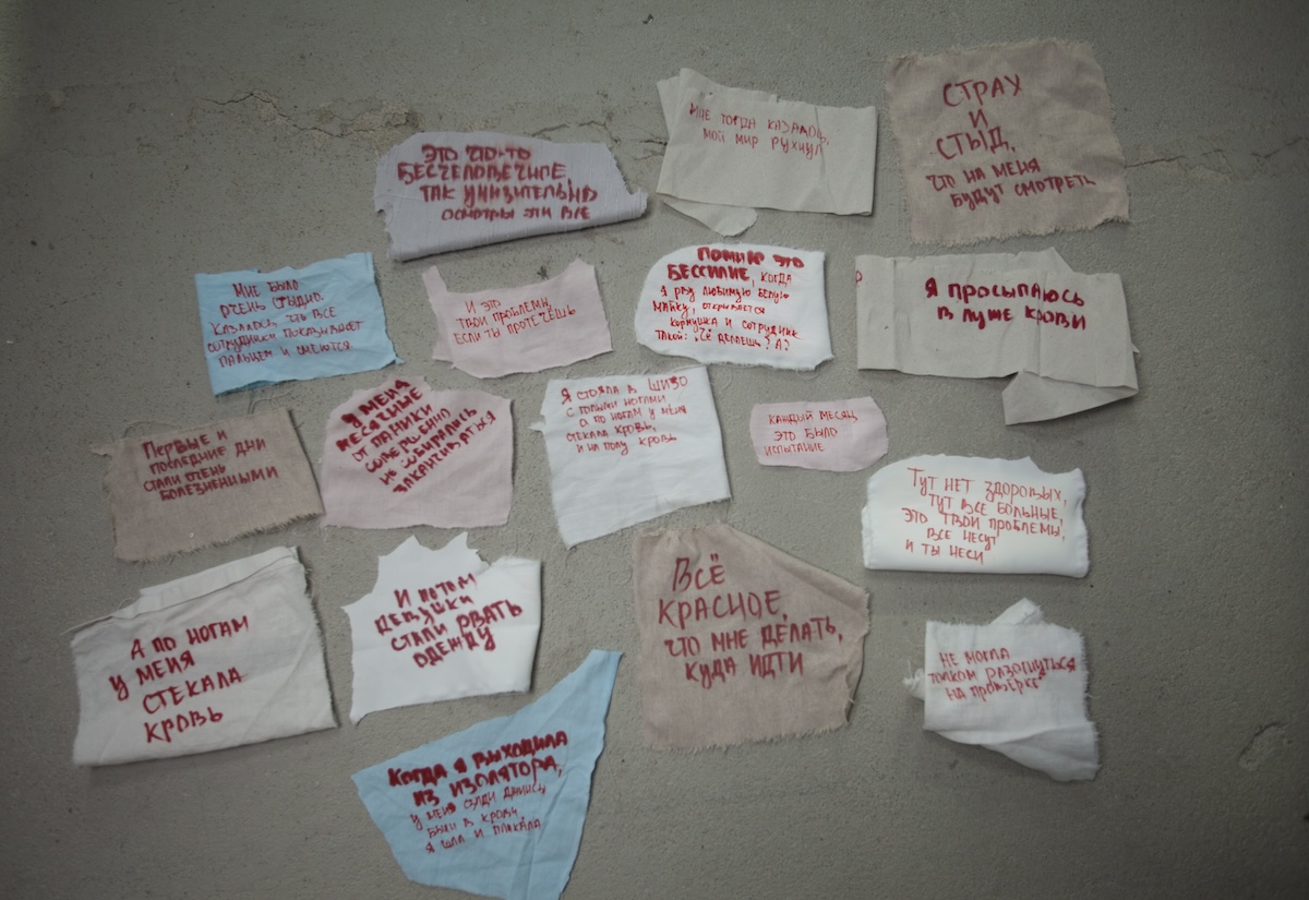 Ich bat um Binden, doch die Gefängnismitarbeiter sagten, das sei nicht vorgesehen. Ich fragte auch beim medizinischen Personal: Eine ältere Frau mit Locken kam und fragte, was los sei. Ich bat sie, wenigstens Watte zu bringen, aber sie hörte gar nicht hin.