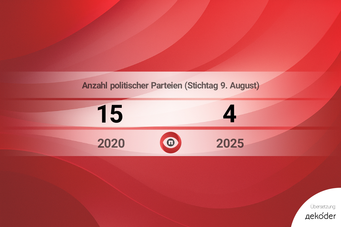 Es gibt nur noch ein Drittel so viele politische Parteien wie 2020. Oppositionelle Parteien gibt es gar nicht mehr. Ebenso wie die Zahl der landesweiten nicht-staatlichen politisch-gesellschaftlichen Medien.