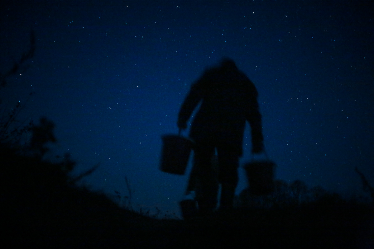 … Auf der Insel angekommen, haben sie ihre Kühe gemolken und tragen im Dunkeln vor Tagesanbruch die Milch davon / Foto © Siarhei Hudzilin