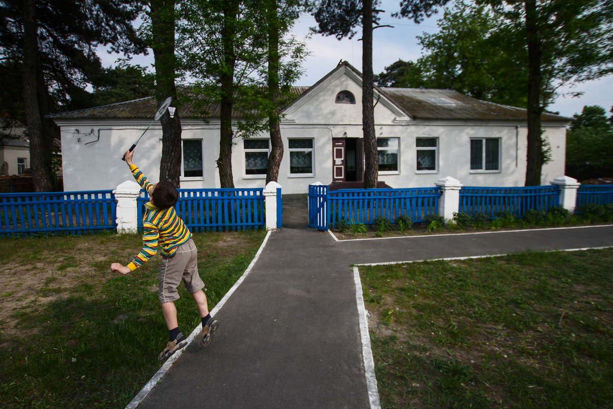 Im Dorf Kamaryn, in der Woblasz Gomel, spielt ein Junge Federball. Kamaryn ist der am südlichsten gelegene Ort von Belarus / Foto © Siarhei Hudzilin