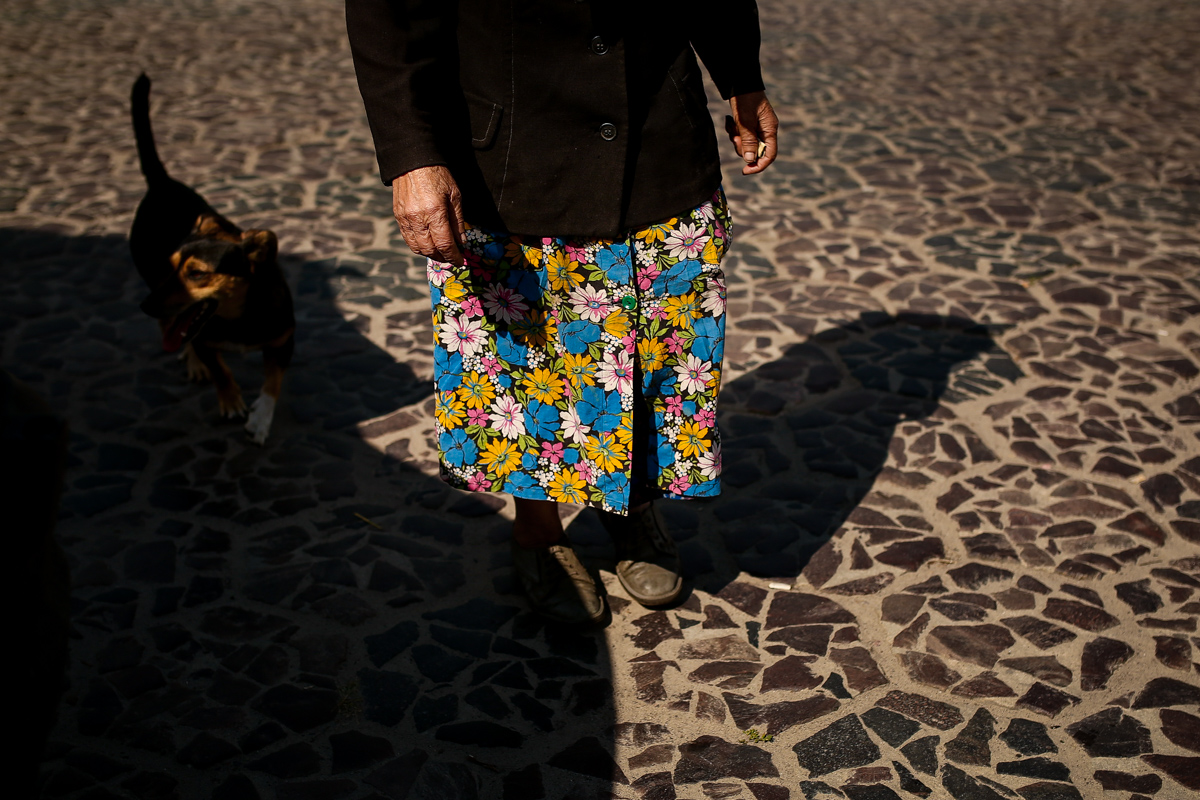 Eine ältere Dame in der Stadt Dawyd-Haradok: Das Kopfsteinpflaster, auf dem sie steht, stammt aus vorsowjetischen Zeiten. In früheren Jahrhunderten gehörte die Stadt zu unterschiedlichen Herrschaftsbereichen, zum Großfürstentum Litauen, zur Polnisch-Litauischen Adelsrepublik und zum Russischen Reich / Foto © Siarhei Hudzilin