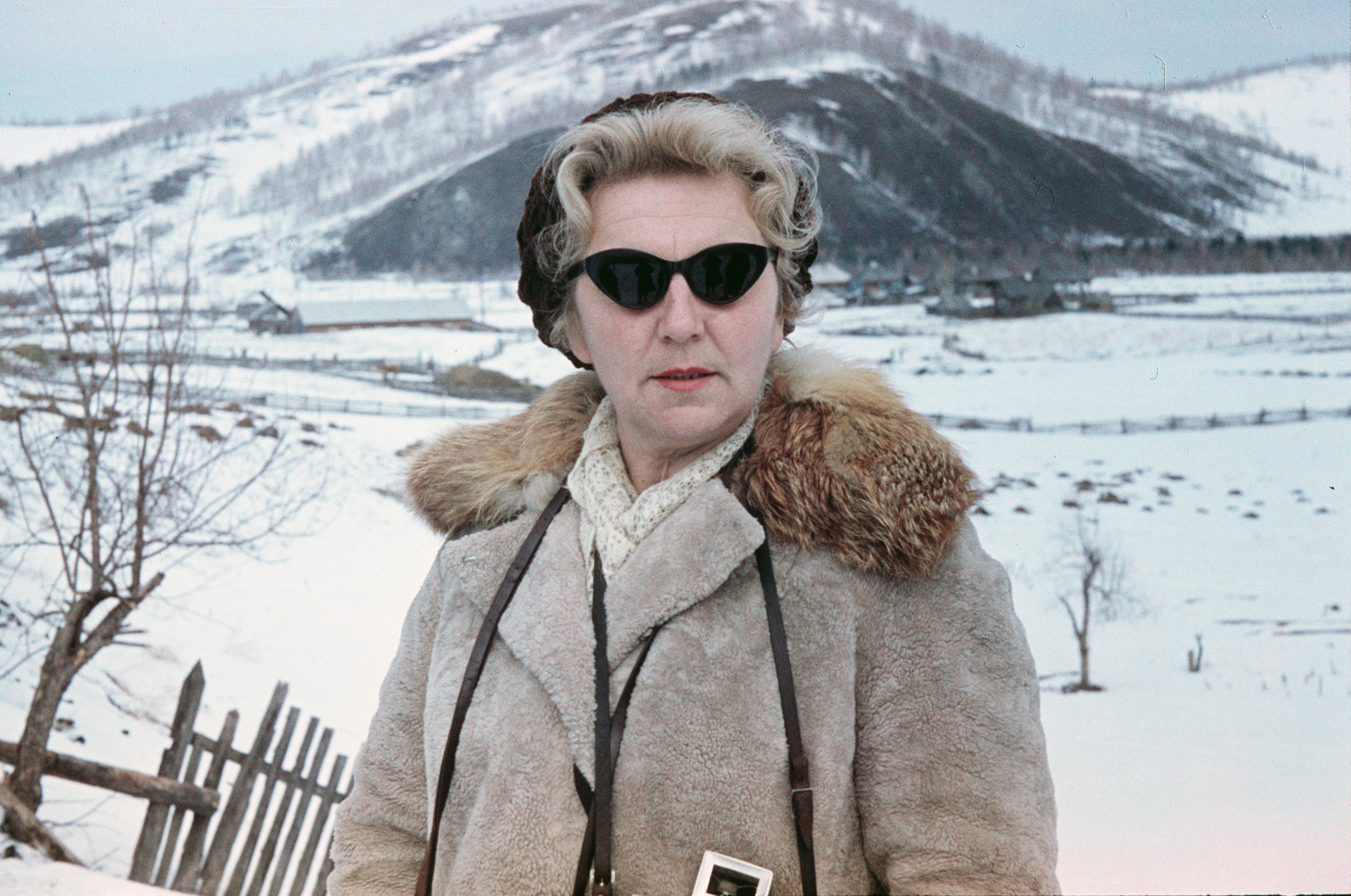 Die Dame mit dem strengen Blick: Galina Babanskaja, geboren 1920 in dieser Wohnung, gestorben 2002 ebenfalls in dieser Wohnung. Sie war Ethnografin und Archäologin. Ihr gehörten die Alben, sie waren ihr persönliches Familienarchiv. Babanskajas erster Mann, Alexander Bernstam: einer der führenden Archäologen der UdSSR. Er starb 1956 – in dieser Wohnung –, nachdem die sowjetische Propaganda auf ihn als einen „kirgisischen Bourgeois” eingehackt hatte (Bernstam ist auf den Fotos nicht zu sehen, dafür aber mehrfach Galinas zweiter Mann, Wenjamin Awerbach, ein Ingenieur, gestorben 2009). Und, Verkettung von Umständen: Zwischen der Familie des Fotografen Max Sher und den Personen auf den Fotos gab es eine Verbindung, wenn auch nur eine haarfeine. Max Shers Vater war Bernstam einmal begegnet, 1951, das Treffen hatte seine Begeisterung für den zukünftigen Beruf geweckt. All das ließ sich nun nach und nach rekonstruieren.