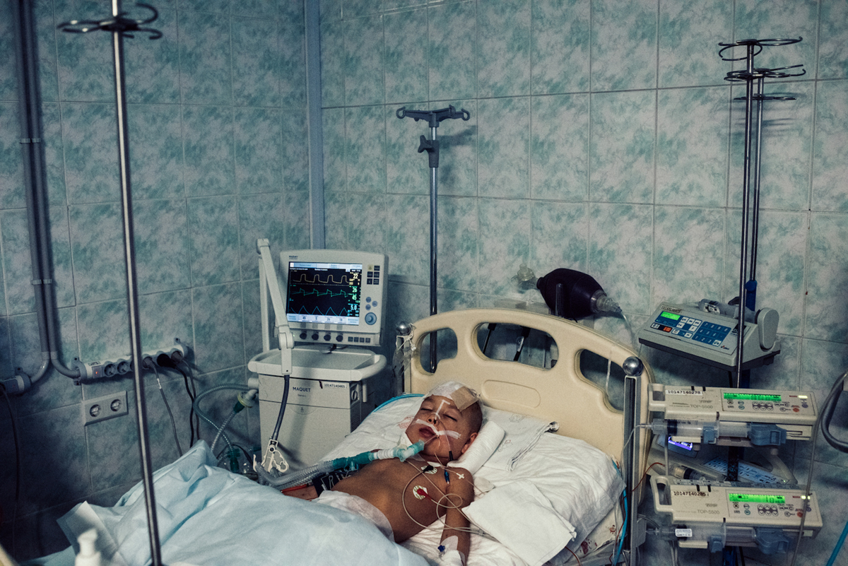 Dieser Junge war eines der ersten Kinder, die Opfer der russischen Bombenangriffe auf Kyjiw wurden. Seine Eltern und seine Schwester kamen während eines Bombenangriffs ums Leben. Der Junge wurde schwer verwundet ins Kinderkrankenhaus gebracht. Da die Ärzte seinen Namen zunächst nicht kannten, führten sie den Patienten als „Unbekannter #1“ / Foto © Maxim Dondyuk, 28.02.2022, Kyjiw