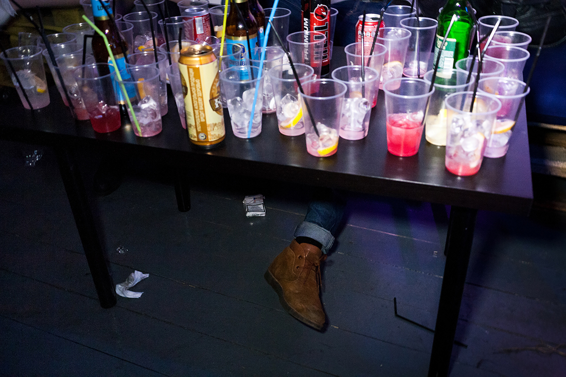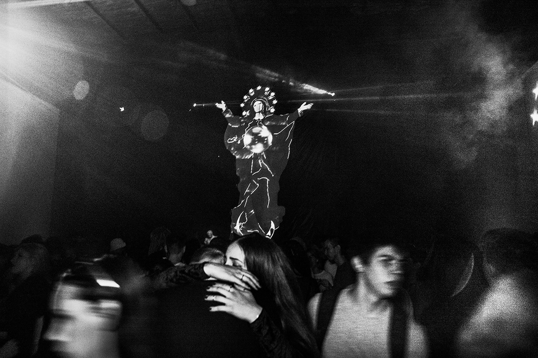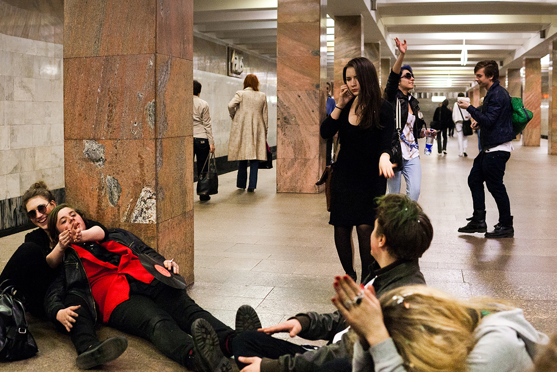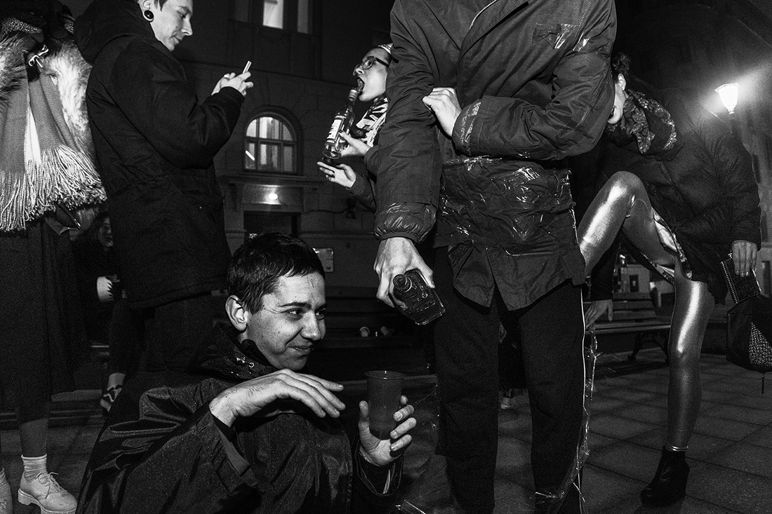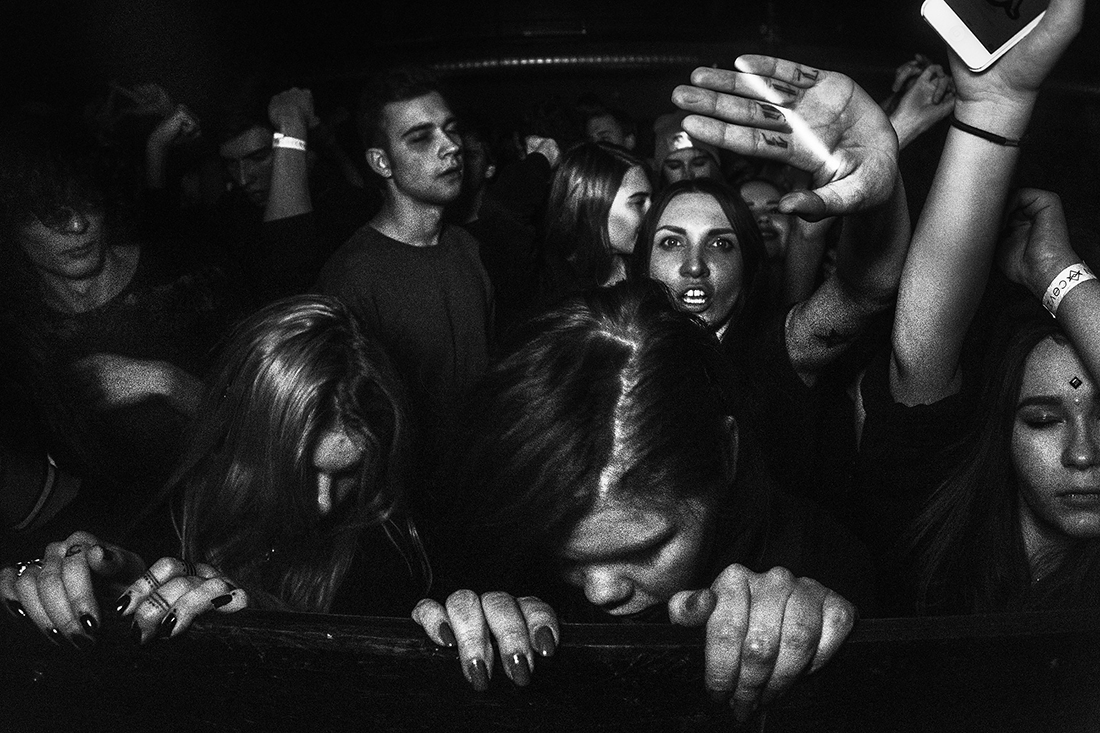 In manchem erinnern Vebers Fotos an die Arbeiten des russischen Großmeisters der Dokumentarfotografie Igor Mukhin, der auch sein Lehrer an der renommierten Rodtschenko-Schule für Fotografie und Multimedia in Moskau war. Mukhin wurde bereits in den 90ern durch seine Arbeit mit Rockmusikern zu einem Chronisten des Moskauer Nachtlebens. Was hat sich seitdem verändert? Bei einigen Aufnahmen Vebers fragt man sich für einen Augenblick, in welchem Jahrzehnt, ja in welchem Jahrtausend man sich überhaupt befindet. Feiert die Jugend nicht immer und überall irgendwie gleich?