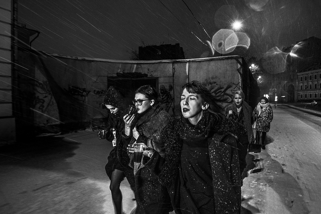 Wenn Moskaus junge Szene feiert, ist der Fotograf Arnold Veber mit der Kamera dabei. Er selbst sieht in den nächtlichen Exzessen eine Reaktion auf Leere und Perspektivlosigkeit der russischen Gesellschaft – aber unterscheiden sie sich wirklich so sehr von dem, was nachts auf den Straßen von Neukölln oder Shoreditch geschieht? Aus Vebers Serie „Wtschera ja wsjo“ (ungefähr: Gestern hab ich’s mir gegeben) von 2015 stammt auch unser Titelbild für den November.