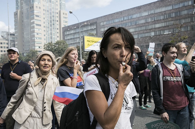 Viele Beobachter vergleichen diese Entscheidung mit der letzten Wahl zum Moskauer Stadtparlament vor fünf Jahren. Auch damals sei sie weder frei gewesen noch fair, auch damals habe es ähnliche Zulassungshürden gegeben. Diesmal, so der Tenor, sei aber Eines anders: Die Opposition, die damals gespalten war, ziehe jetzt an einem Strang. Tatsächlich kam es bisher noch nie vor, dass Ljubow Sobol, Ilja Jaschin, Dimitri Gudkow und andere Oppositionelle gemeinsame Forderungen erheben und gemeinsam auf die Straße gehen. Wlad Dokschin hat sie begleitet und die Proteste in einer Fotoreportage für die Novaya Gazeta festgehalten.