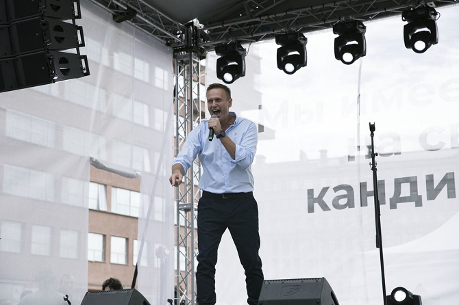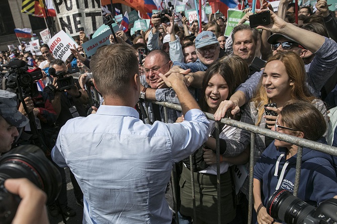 Der Politiker Alexej Nawalny vor dem Beginn der Kundgebung bei seinen Anhängern / Foto © Wlad Dokschin