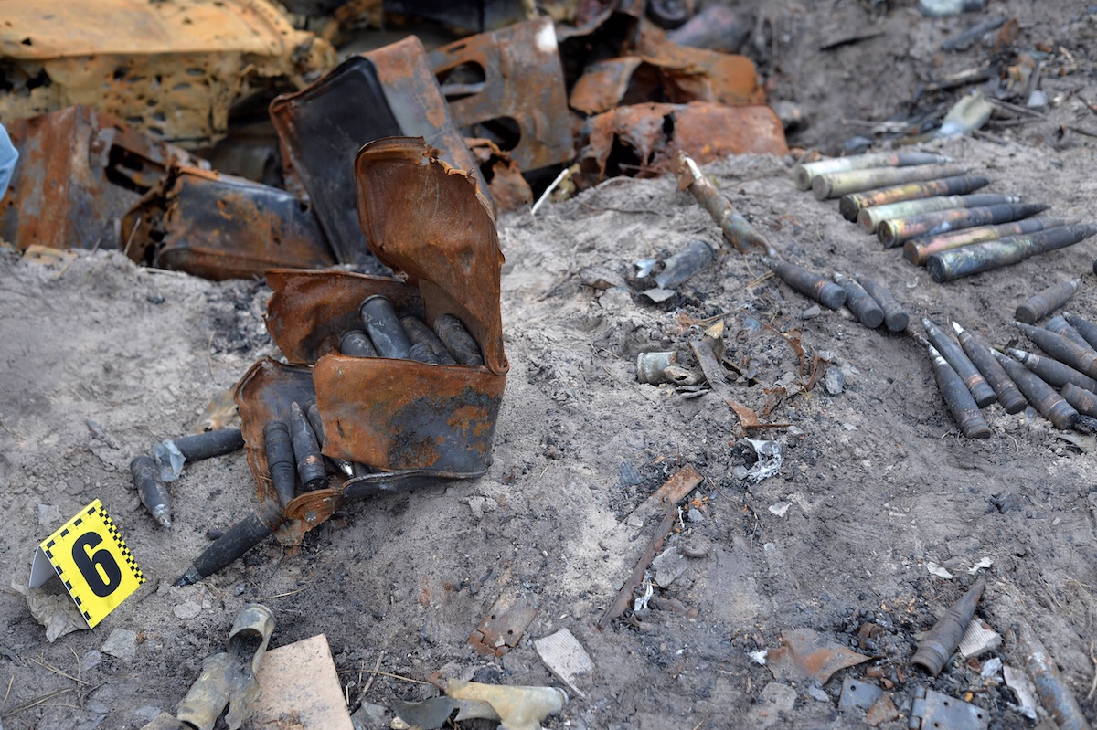 Michail Sawwa: Das erste Mal, dass ich ein Kriegsverbrechen dokumentiert habe, war am 3. März 2022 auf dem Gebiet des besetzten Teils der Oblast Kyjiw. Ich beobachtete aus einem Abstand von etwa 400 Metern, wie sich eine russische Militärkolonne über die Fernstraße von Schytomyr auf Kyjiw zubewegte, angeführt von einem Schützenpanzer. Zwei Zivilautos, normale PKWs, fuhren von Butscha her auf die Fernstraße. Sie mussten sie überqueren, um ins nächste Dorf zu gelangen, von wo aus eine freie, nicht von den Russen besetzte Straße nach Kyjiw führte. Der Schützenpanzer feuerte einfach aus seiner Kanone auf die Autos; mehrere Schüsse aus einer 30-Millimeter-Kanone. Als die Kolonne vorbeigezogen war, konnten wir aus der Nähe fotografieren. In jedem Auto waren drei Menschen umgekommen, nur noch die Beine waren zu sehen, die Körper waren von den Geschossen zerfetzt worden. Wir erkannten, dass in jedem der Autos ein Mann am Steuer gesessen hatte und eine Frau und ein Kind mit im Wagen gewesen waren. Wir fanden die Autokennzeichen und fotografierten sie, und so konnten wir die Identität eines der beiden Fahrer feststellen. Es war ein Freiwilliger aus Kyjiw, der einfach nur Menschen herausholen und retten wollte.