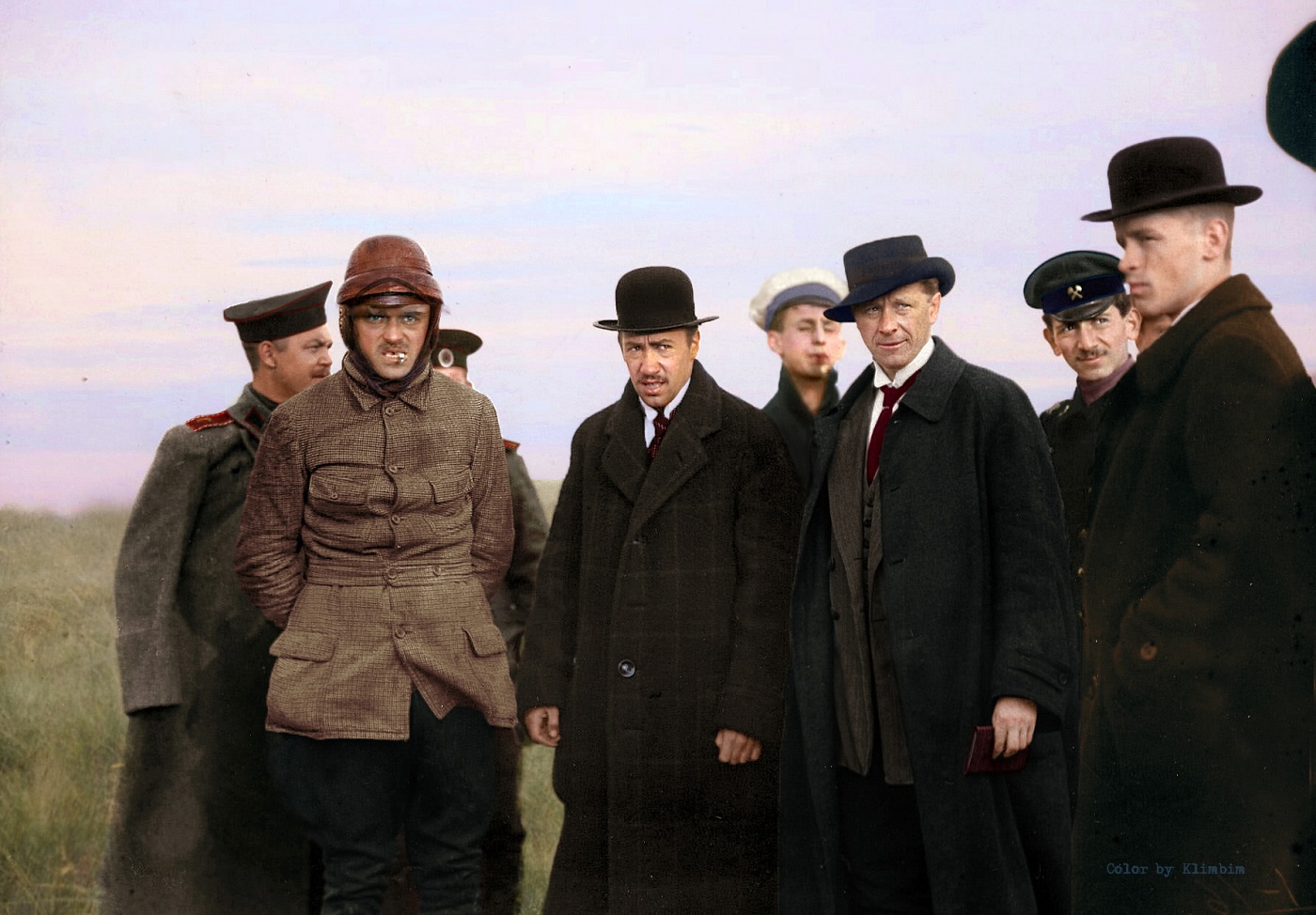 Der Mann auf der linken Seite ist Adam Gaber-Wlynski – Pilot der Meller-II; in der Mitte Igor Sikorski – Konstrukteur des Russki Witjaz