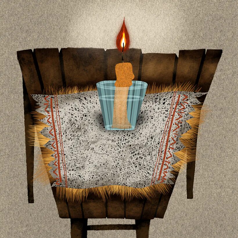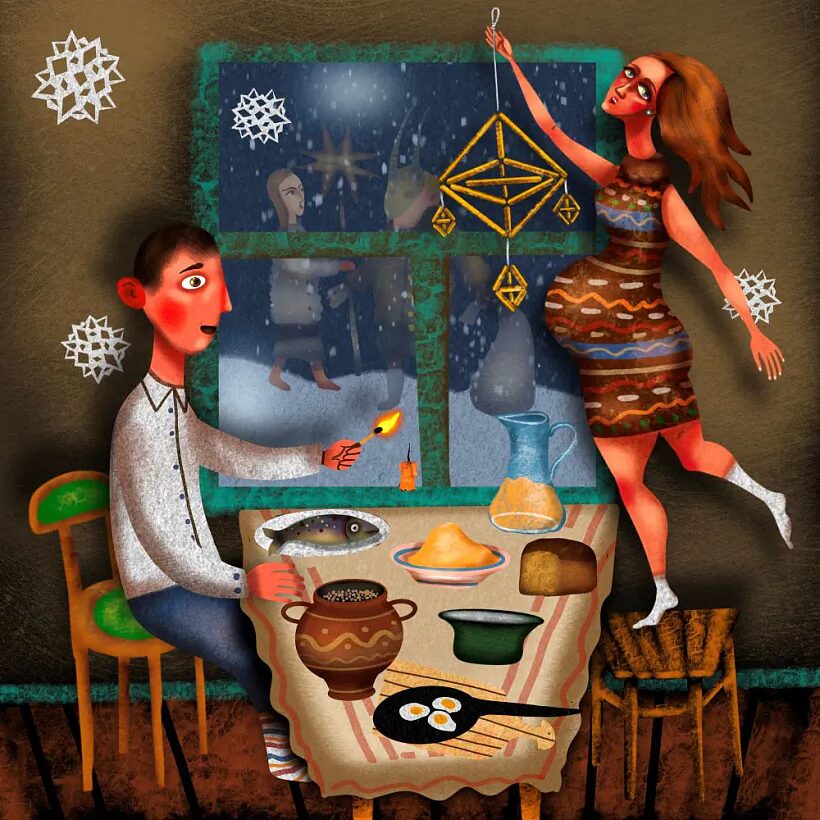 Auf den Tisch oder unter die Ikonen im Herrgottswinkel stellte man eine Kerze. Die lebendige Flamme symbolisierte Licht, Wärme und Hoffnung. Sie wurde zu Beginn des Abendessens angezündet, begleitet von einem Gebet. Ältere Traditionen sprechen von Lagerfeuern, die in dieser Nacht entzündet wurden, und Laternen aus Kürbissen, in die die Weihnachtssänger ebenfalls Kerzen stellten.