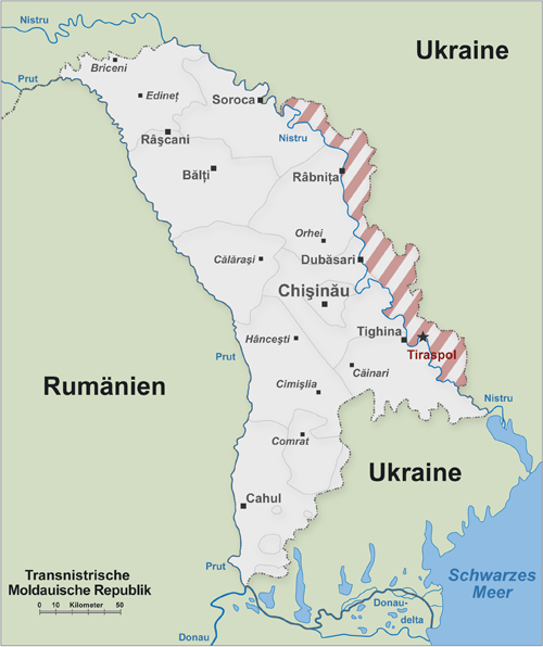 Der russische Name Pridnestrowje (dt. Transnistrien) bedeutet in etwa „Land am Dnestr“: das ist die russische Namensform des Flusses Dnister. Das völkerrechtlich zur Republik Moldau gehörende Gebiet liegt östlich des Flusses Dnister, am rechten Ufer / © Wikipedia/Perconte unter CC BY-SA 2.0