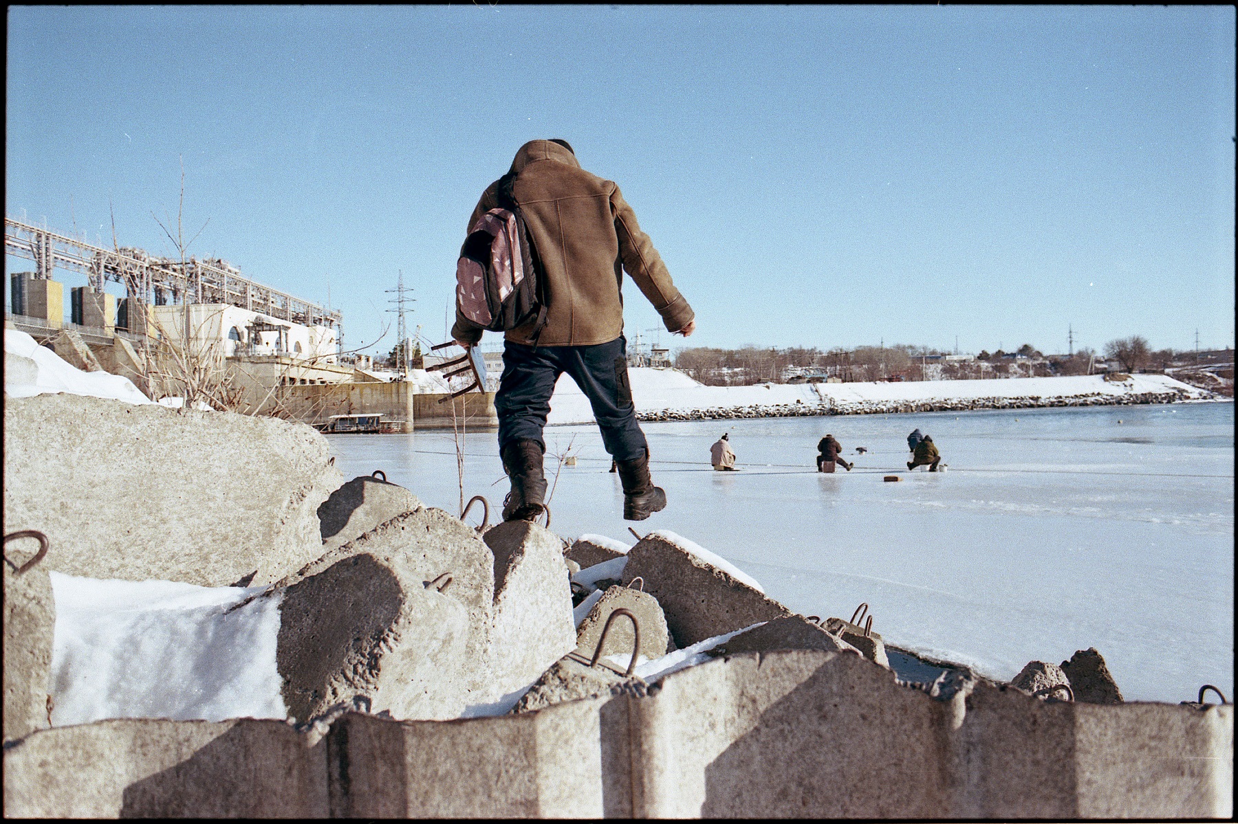 Fischer beim Eisfischen neben dem Wasserkraftwerk von Dubossary. Im März 1992 begann in diesem Rajon der Transnistrien-Konflikt / Foto © Michail Kalaraschan