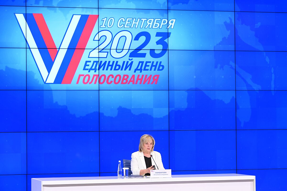 Die Verlesung der Wahlergebnisse am 11. September 2023 / Foto © Maksim Blinov/Sputnik Moscow Russia/imago-images