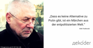 Gleb Pawlowski sieht die bisherige Taktik des Kreml in die Jahre gekommen. Pawlowski, früher mit direktem Draht zu den Machthabern, ist vor Jahren in Ungnade gefallen und zynisch-kritischer Kommentator seiner Zeit geworden. Einer, der die politische Bühne vornehmlich als Theater sieht – und daraus seine eigenen Schlüsse zieht.