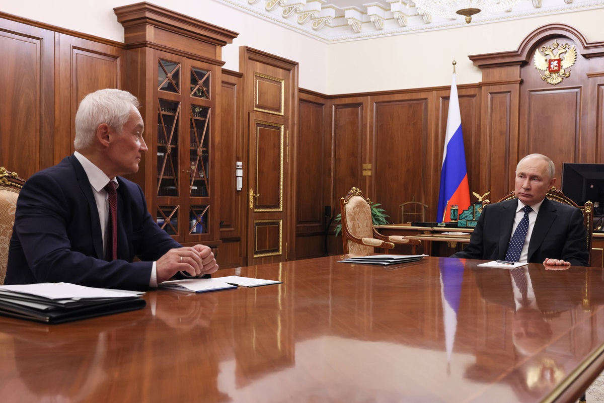 Andrej Beloussow und Wladimir Putin bei einem Treffen im Kreml im November 2023 / Foto © Gavriil Grigorov/Russian Presidential Press and Information Office/TASS/imago-images