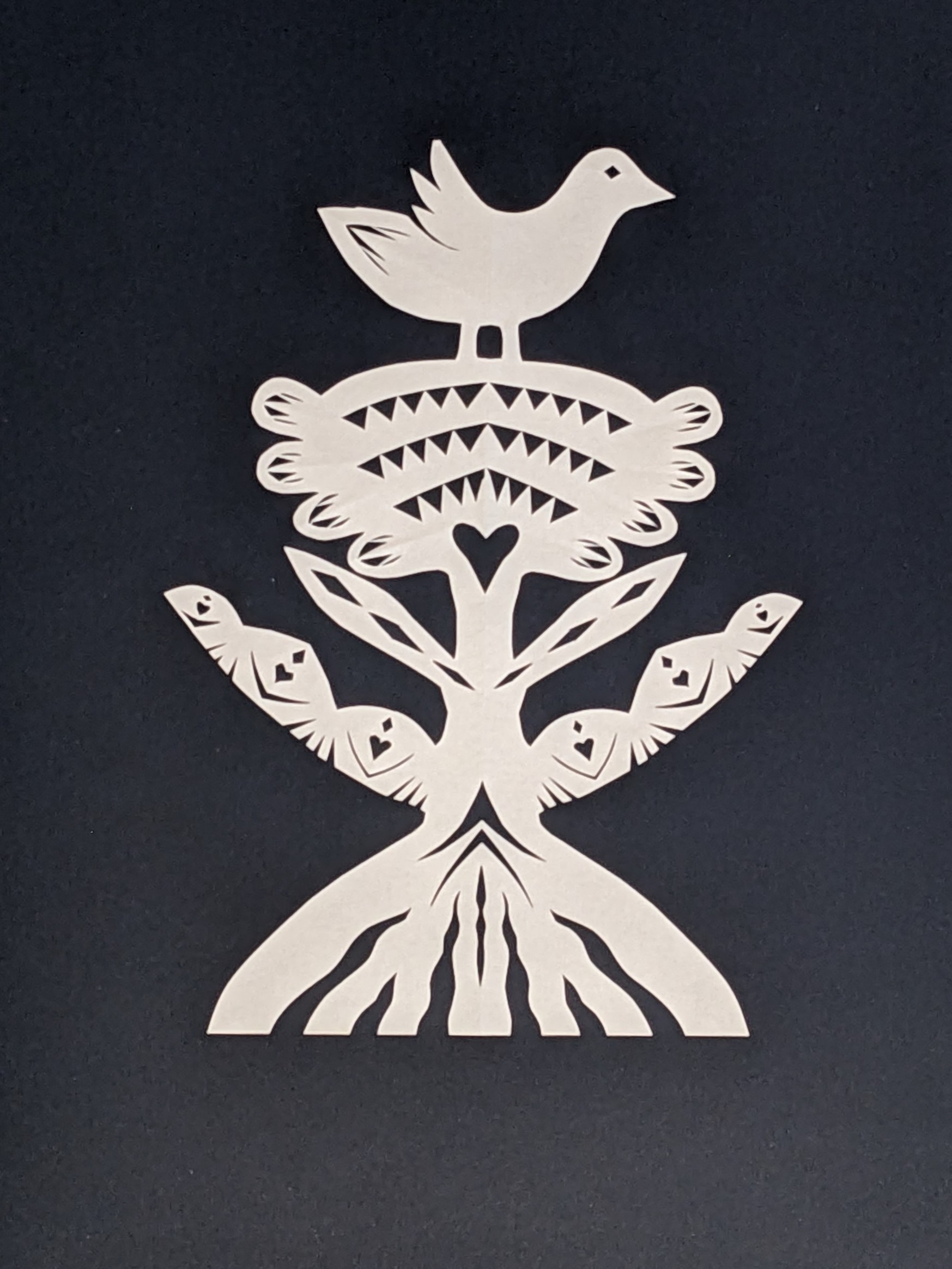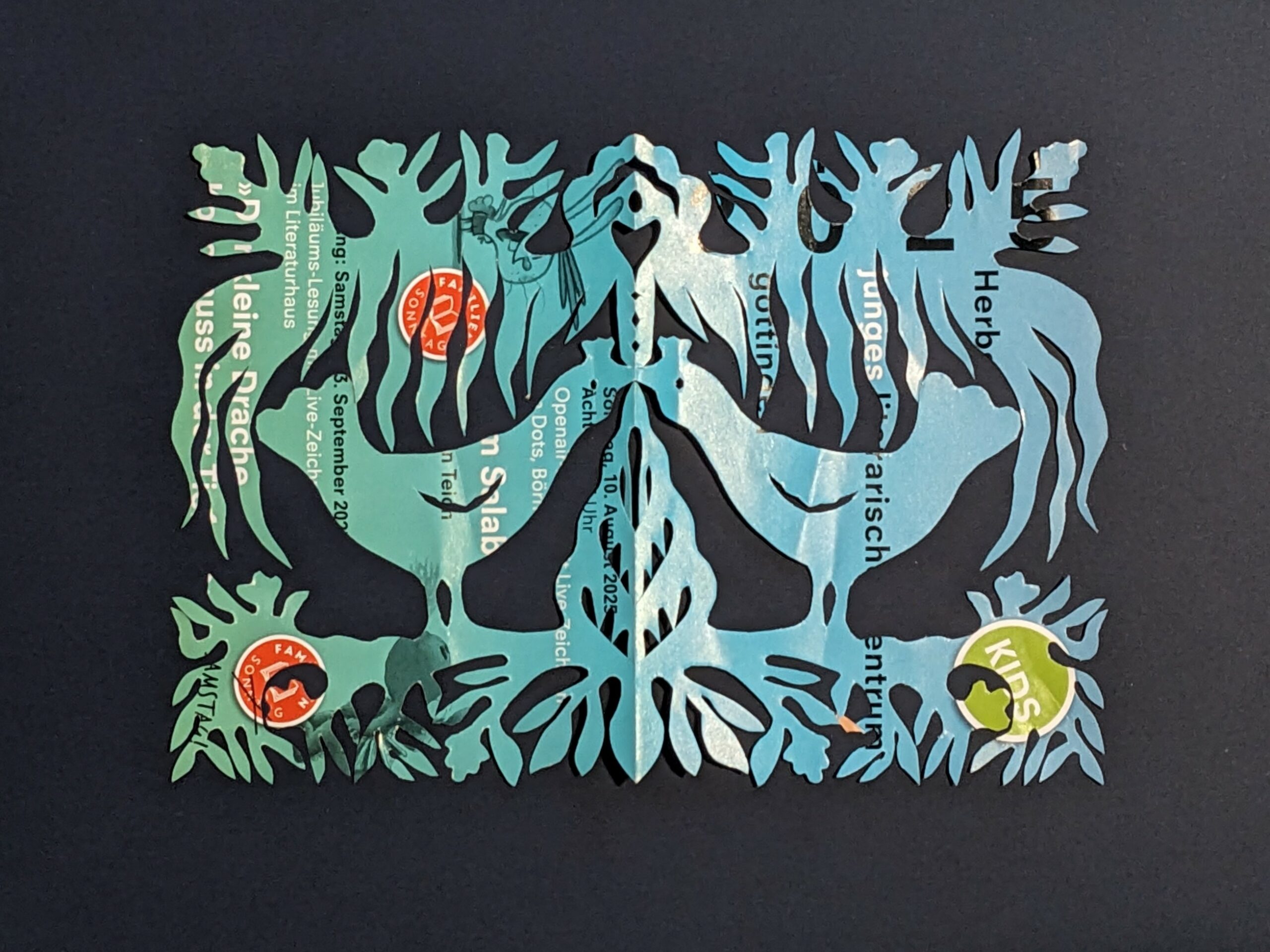 „Ich schaue nicht nach einem bestimmten Papier. Ich schneide aus dem aus, was ich habe. Einmal habe ich eine Wyzinanka aus einer McDonald’s Tüte geschnitten.“ Während der Künstler Vital Nazarevič das erzählt1, sieht man, wie er mit einer kleinen Schere ein Stück Papier bearbeitet. Aus dem Papierchen entsteht eine Wyzinanka (vom belarussischen Wort wyzinaz – fein, filigran ausschneiden), ein ornamentreicher Scherenschnitt mit winzigen Details. Ursprünglich stammt diese Kunstform aus China, wo sie auf eine über 1000-jährige Geschichte blicken kann. In belarussischen Gebieten reicht ihre Tradition bis ins 16. Jahrhundert zurück. Sie ist als Wytynanki, Wycinanki und Karpiniai auch in der Ukraine, Polen und Litauen bekannt. Im Jahr 2024 wurde die belarussische Wyzinanka in die repräsentative Liste des immateriellen Kulturerbes der UNESCO aufgenommen. Mittlerweile steht sie anscheinend auch unter Beobachtung des Lukaschenko-Regimes. Denn im Januar 2026 wurde der Instagram-Account von Nazarevič als extremistisch eingestuft. Seiner Kunst auf Instagram zu folgen ist in Belarus damit strafbar geworden.