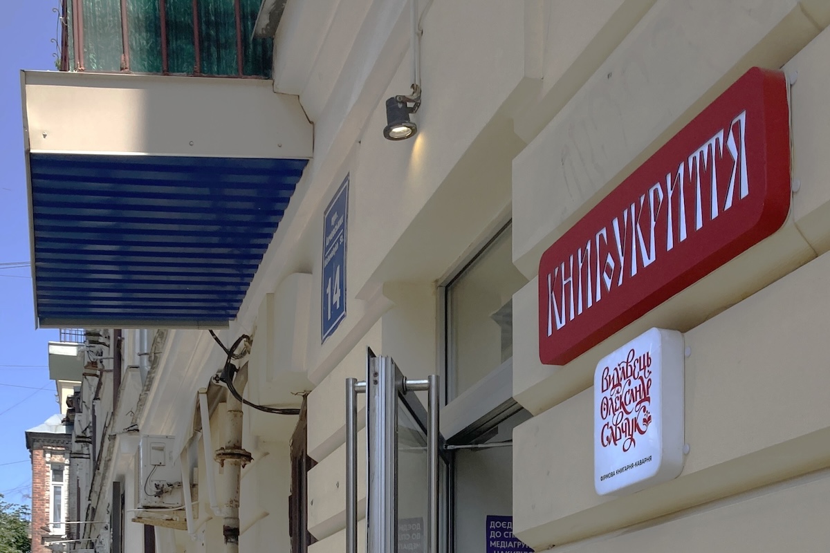 In Charkiw eröffnen auch während des Krieges neue Buchhandlungen3, und jede von ihnen wirkt wie ein vorübergehender Schutzraum für die Kultur, so etwa das neue Knyhoukryttja (dt. „Buchbunker“) – eine Buchhandlung mit Café und Schwerpunkt auf Charkiwer Ukrainistik.