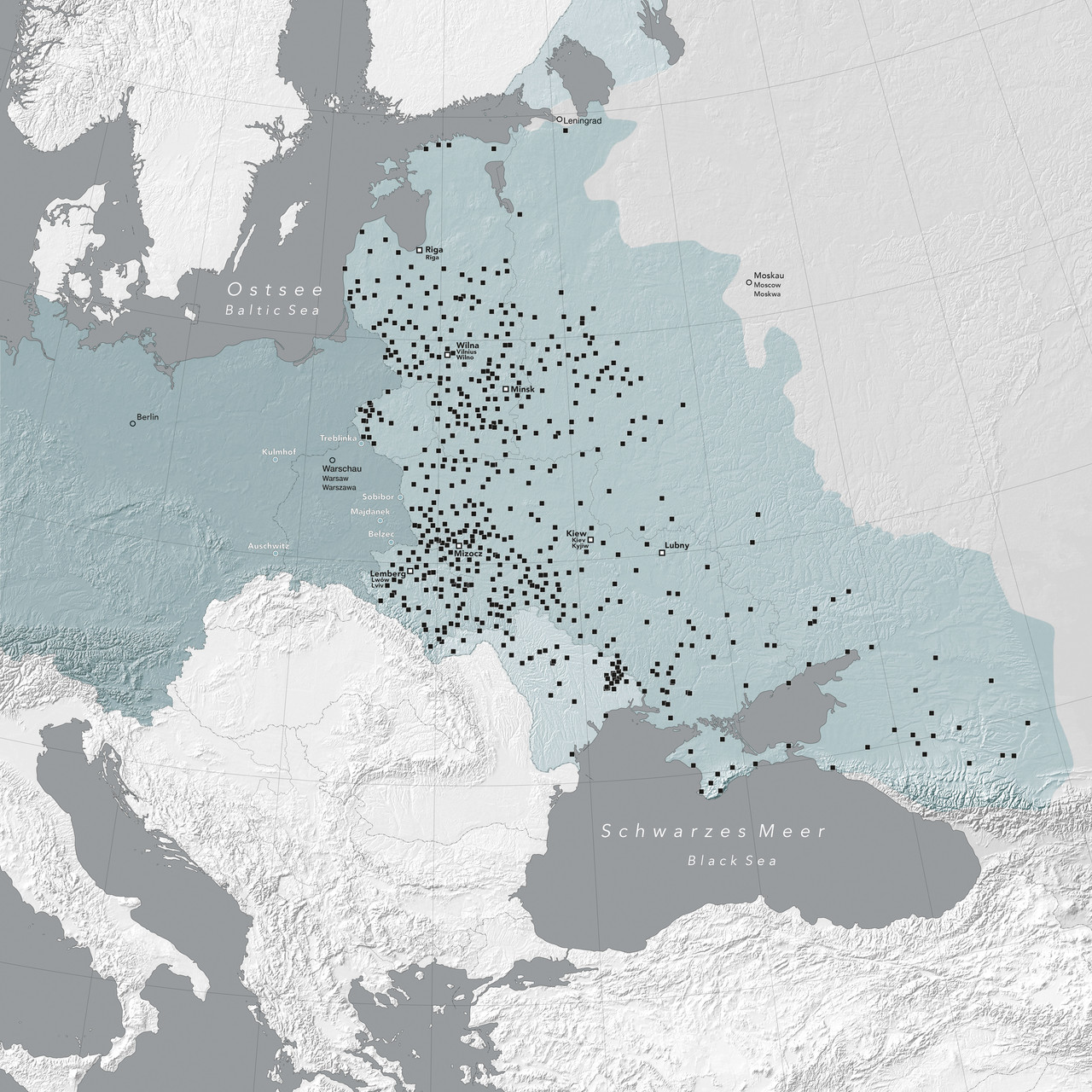 Etwa sechs Millionen Juden fielen dem Holocaust zum Opfer, die überwiegende Mehrheit in Osteuropa. Rund drei Millionen von ihnen hatten zuvor in Polen gelebt und auch die deutschen Vernichtungslager, bis heute weltweites Symbol des nationalsozialistischen Völkermords, befanden sich auf polnischem Boden. Doch nicht nur das polnische Judentum wurde fast vollständig ausgelöscht: Auch auf dem Gebiet der Sowjetunion ermordeten deutsche Einheiten unter Mithilfe einheimischer Hilfskräfte Millionen Menschen. Nur wenige kamen in die Vernichtungslager in Polen, die Juden aus der Ukraine und dem Baltikum, aus Belarus, Russland und Moldawien wurden meist Opfer von Massenerschießungen. Obwohl etwa einem Drittel der sowjetischen Juden die Evakuierung gelungen war, gab es gerade in jenen Gebieten, die erst 1939/1940 von der Sowjetunion annektiert worden waren, kaum eine Chance auf Untertauchen und Überleben.
