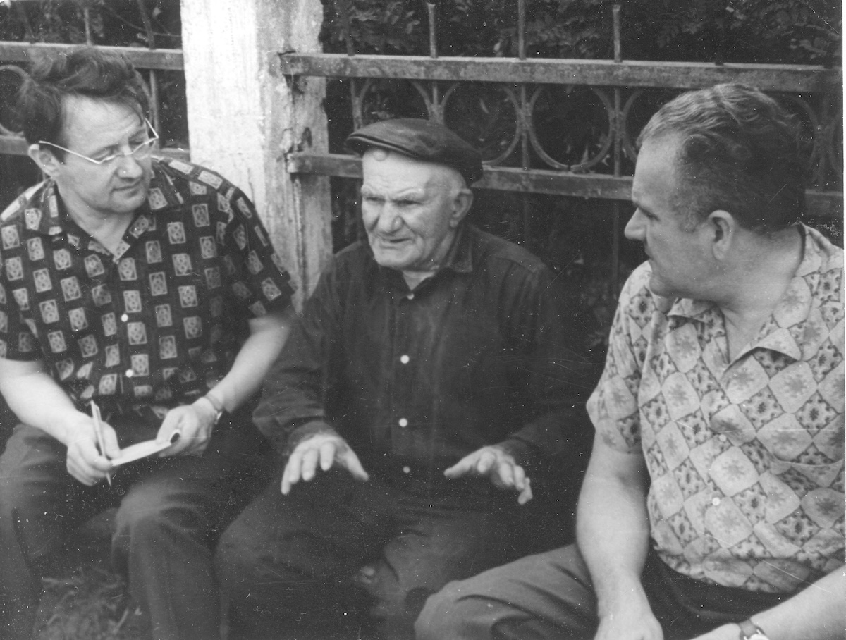 Für einen allein wäre es sicher schwierig geworden, die vielen Besuche bei den Überlebenden in insgesamt 147 bereisten Dörfern zu bewältigen, geschweige denn all das Gesagte zu dokumentieren. So teilten sich Ales Adamowitsch, Uladsimir Kalesnik und Janka Bryl die Arbeit am Buch Feuerdörfer. Der Produktionsprozess umfasste verschiedene, aufeinanderfolgende Aufgaben: Recherche der insgesamt 300 Überlebenden, Reise in die Dörfer sowie die Interviews und das Notieren des Erzählten. Während der eine das Gespräch in die Hand nahm, schaltete der andere das Diktiergerät ein oder führte die Notizen, der dritte fotografierte. 1975 erschien das umfassende Werk und holte das Erinnern an die NS-Politik der „verbrannten Dörfer“ aus dem Privaten in eine bis dahin einzigartige literarisch-dokumentarische Form.2 „Feuerdörfer“ gilt seitdem als Grundstein für die belarusische Dokumentarliteratur der Nachkriegszeit und gibt sich in den Anfangspassagen explizit als dokumentarisch aus, als „eine dokumentarische Tragödie, eine Buch-Erinnerung, die lebendige Stimme von Menschen, die zusammen mit der Grube, zusammen mit ihrem Dorf verbrannt, getötet wurden und die – leben.“3