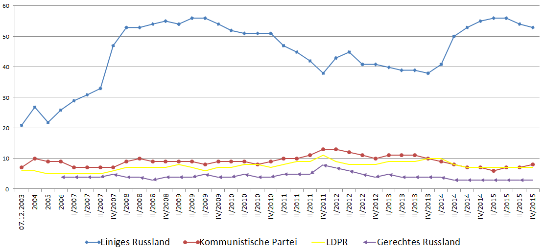 Grafik 1: Umfragewerte der größten russischen Parteien ab 2003