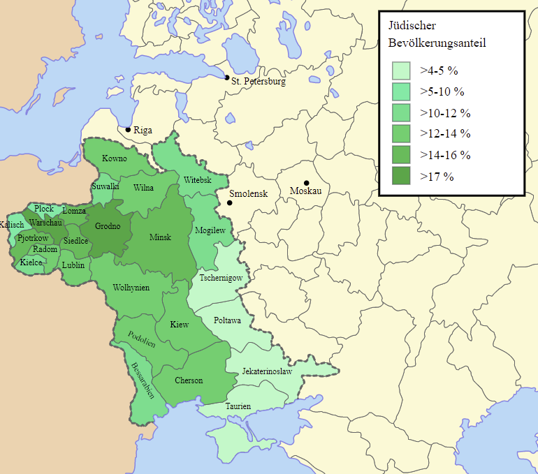 Doch im Laufe des 19. Jahrhunderts entfremdeten sich die Jüd*innen zunehmend vom russländischen Staat. Dies hing wesentlich mit Einschränkungen der Bildungschancen und der sozialen Mobilität zusammen, denen sie unterlagen und die zu Verarmung und Perspektivlosigkeit führten. Denn ähnlich wie andere Gruppen – etwa die Bäuer*innen – genossen Jüd*innen im Russischen Reich keine Freizügigkeit. Sie durften nur im sogenannten Ansiedlungsrayon siedeln – und dort auch nur in den Städten – und unterlagen Beschränkungen was ihre Berufswahl und Bildungsmöglichkeiten betraf.