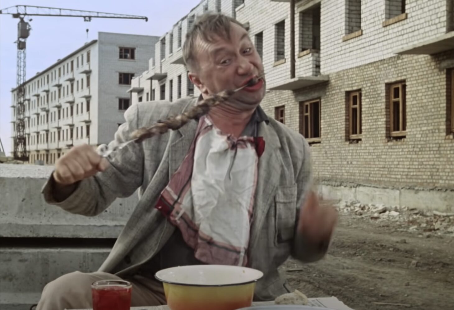 Viele sowjetische Filme zeigen Szenen, in denen Schaschlik verspeist oder zubereitet wird / Bild © Screenshot des Filmes Operation „Y“/Mosfilm